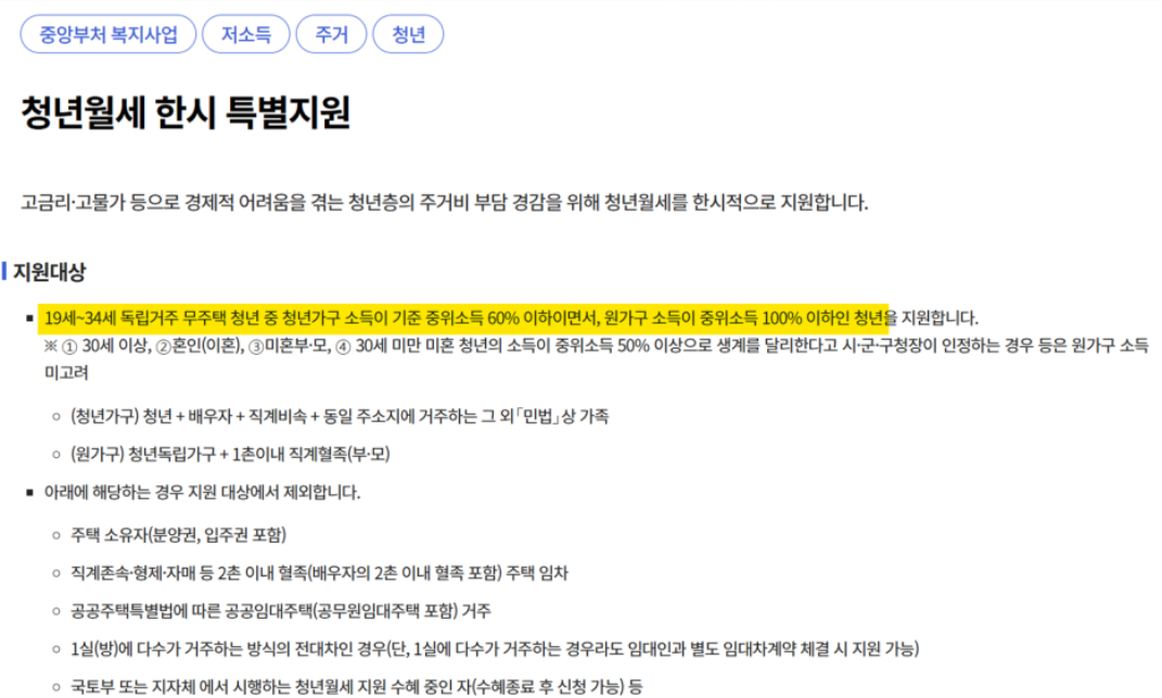 또한, 보증금이나 월세 한도 외에도 소득 기준(기준 중위소득 150% 이하 등)이 적용되기 때문에, 단순히 나이만 맞는다고 자동으로 지원되는 것은 아닙니다.