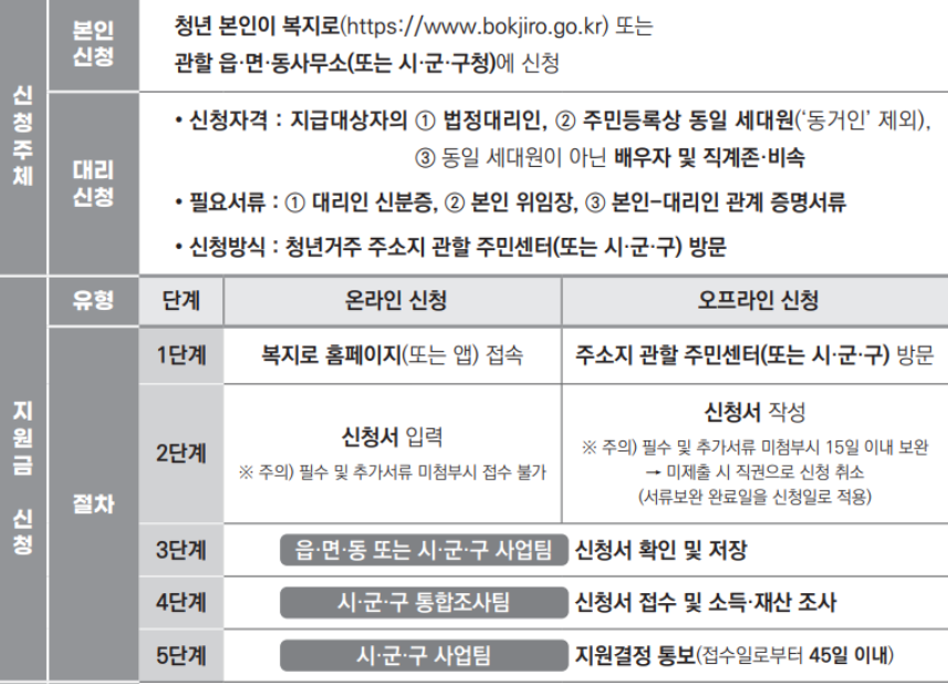 인천시와 국토교통부 지원사업은 복지로 누리집을 통해 온라인 신청이 가능하며, 오프라인으로는 관할 행정복지센터 또는 주민센터 방문 신청도 허용됩니다.